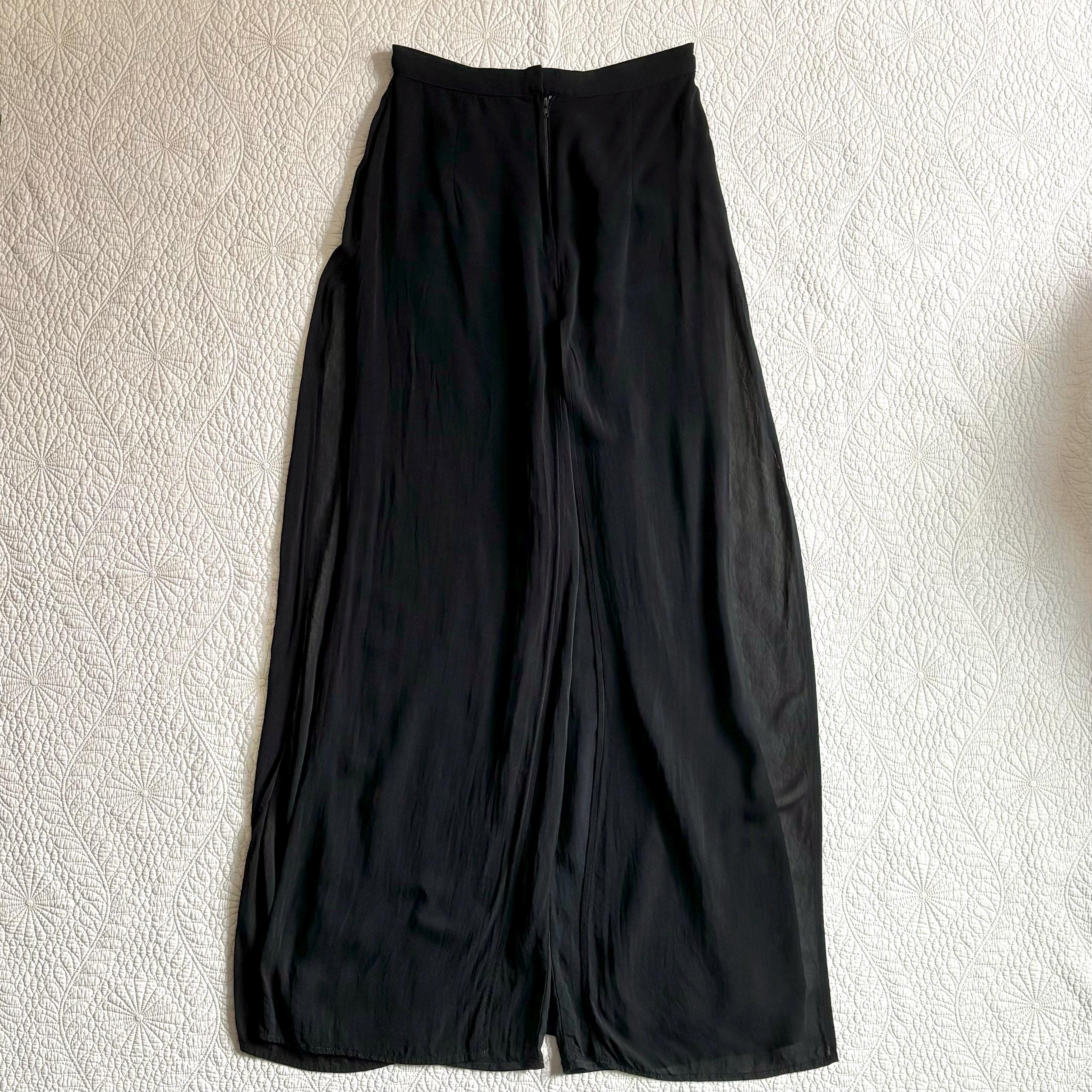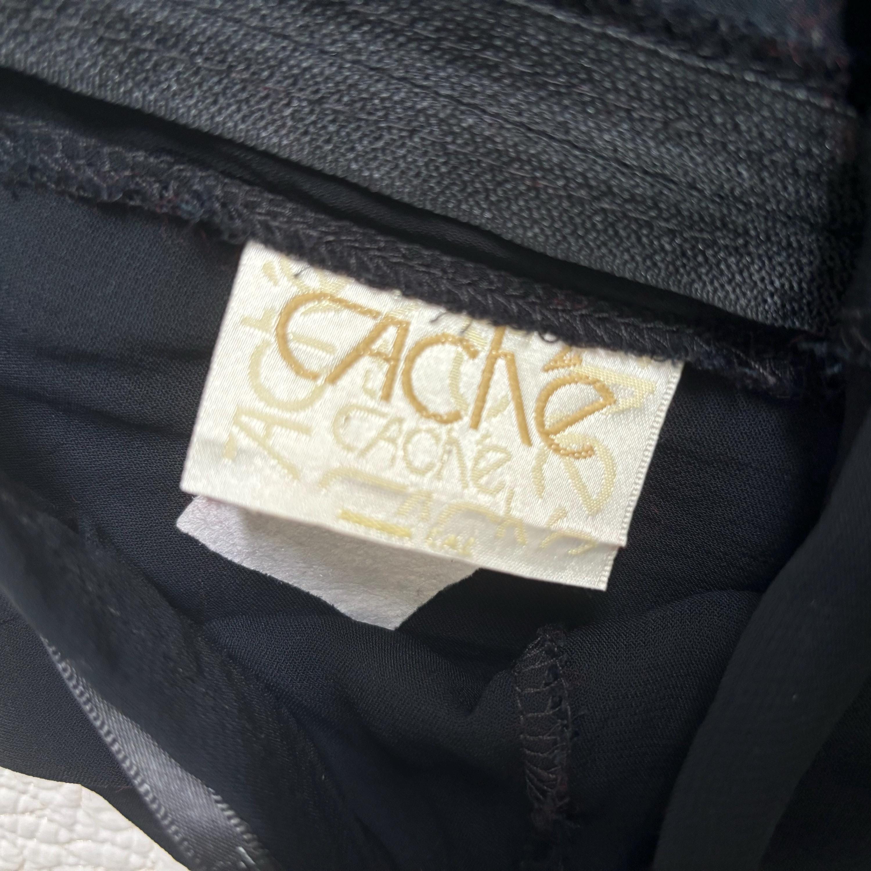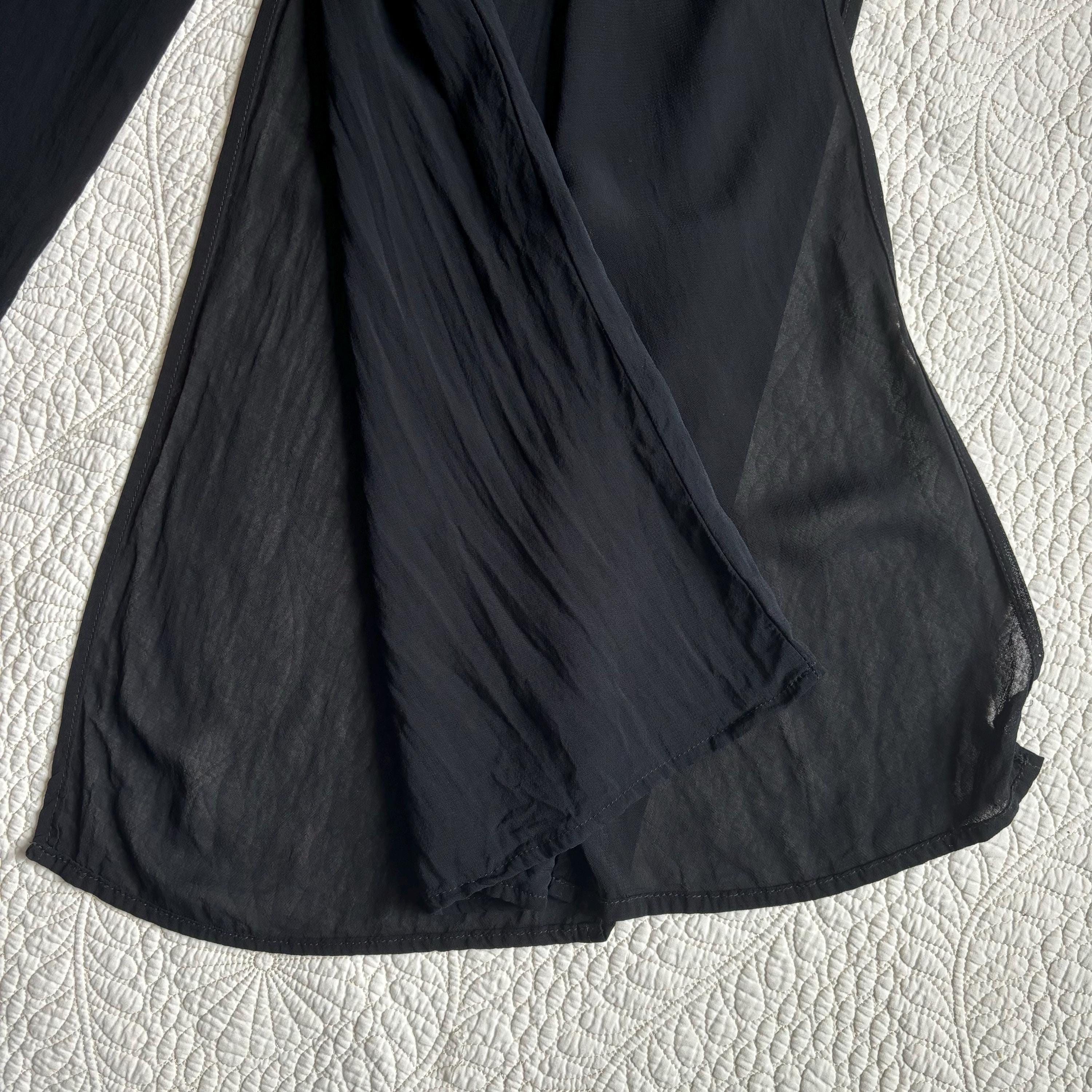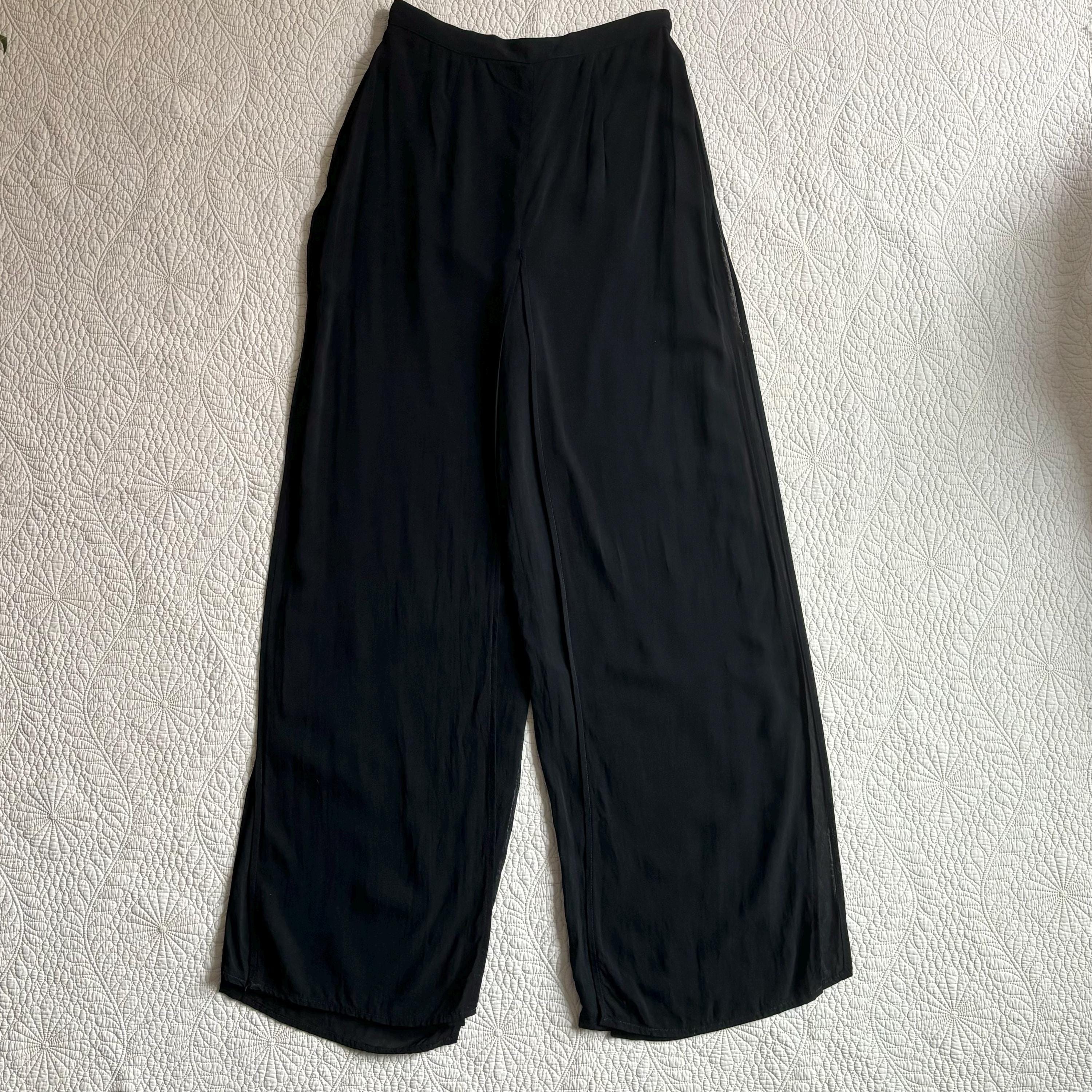 These vintage Caché pants have a high waist, with sheer gauzy legs, and even sheerer panels front and back. Closes at the waist with a zipper and hook & eye. Really stunning! Could make a perfect addition to your spooky season wardrobe. Tadashi Shoji continues to make a very similar style called the Seaton, if you want to search that up to get an idea of it on a person. It's a slightly different silhouette, but the idea is the same.100% rayon. Made in the USA. UK Size 8. Please see the measurements for best fit!