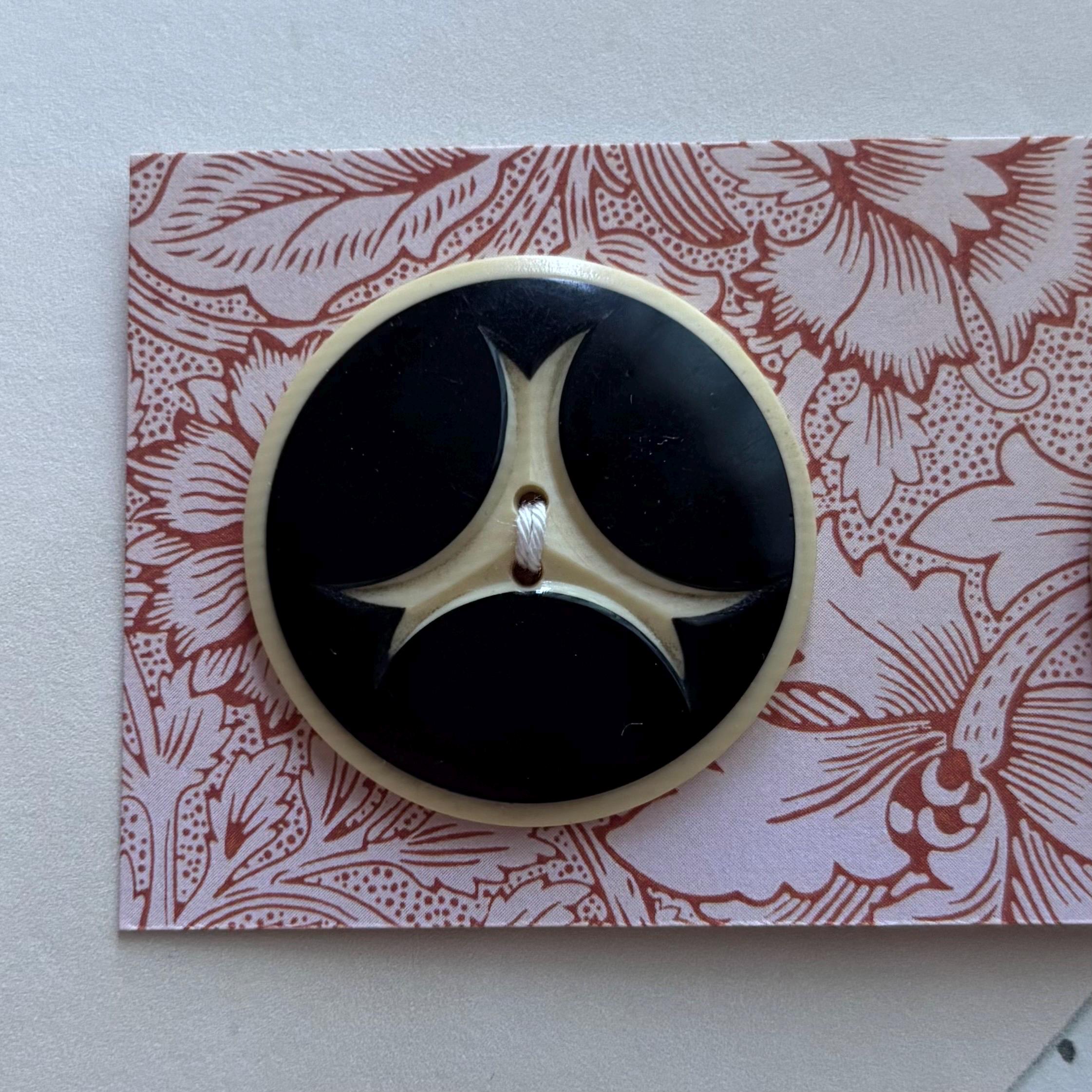 Vintage, good condition overall. There is a fair bit of light surface scratching on the buttons, as to be expected after many decades. The button with the three-armed carving has a few very tiny dents on the surface. They still present beautifully and have no chips or cracks.