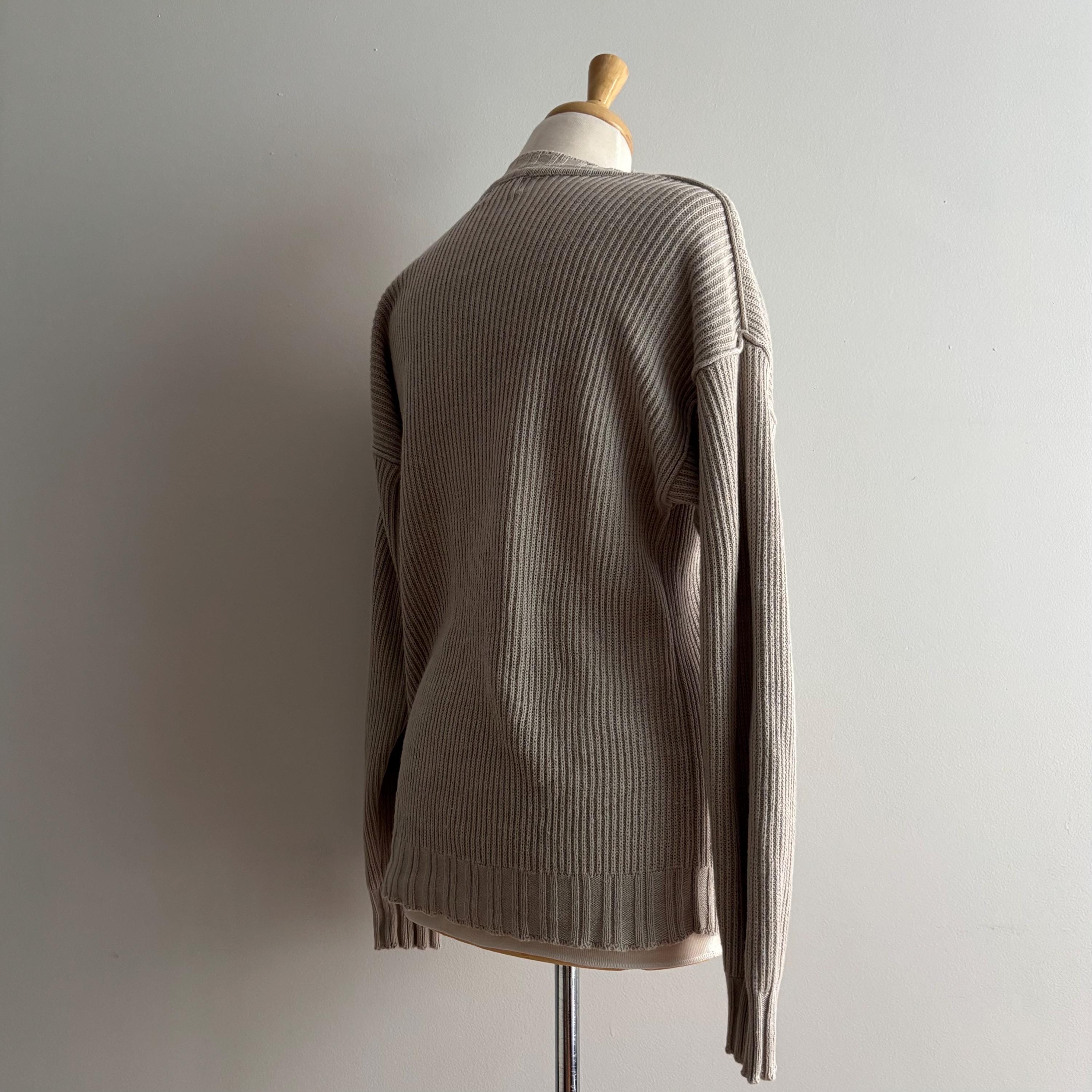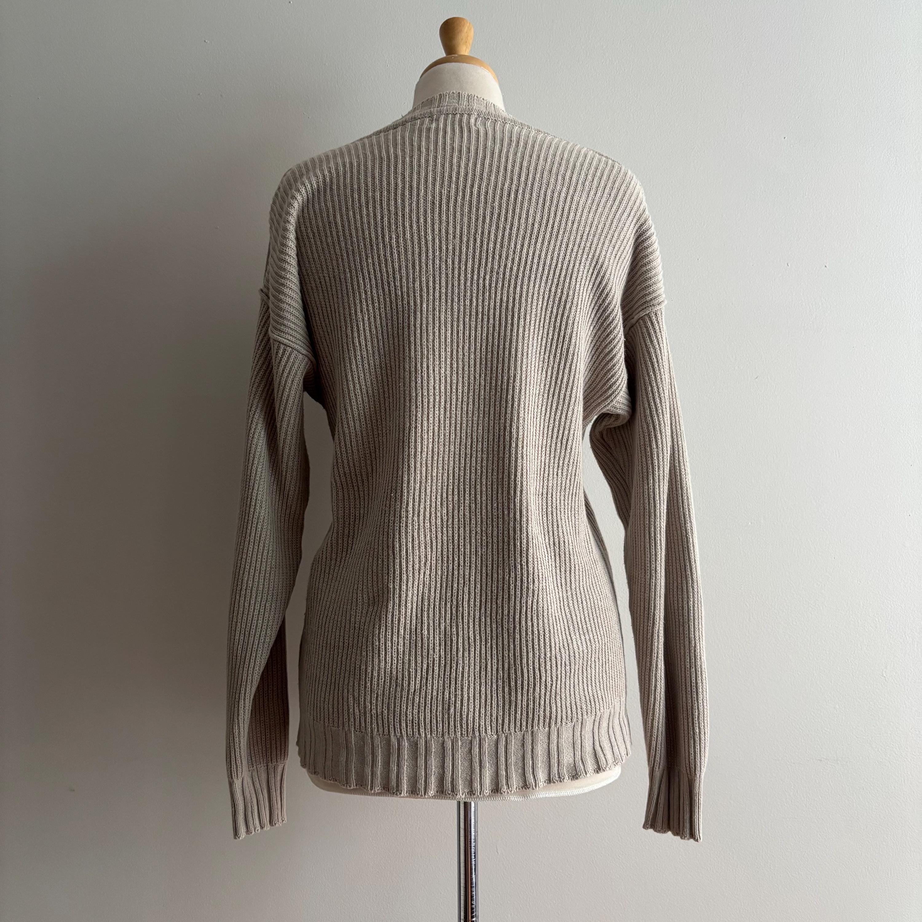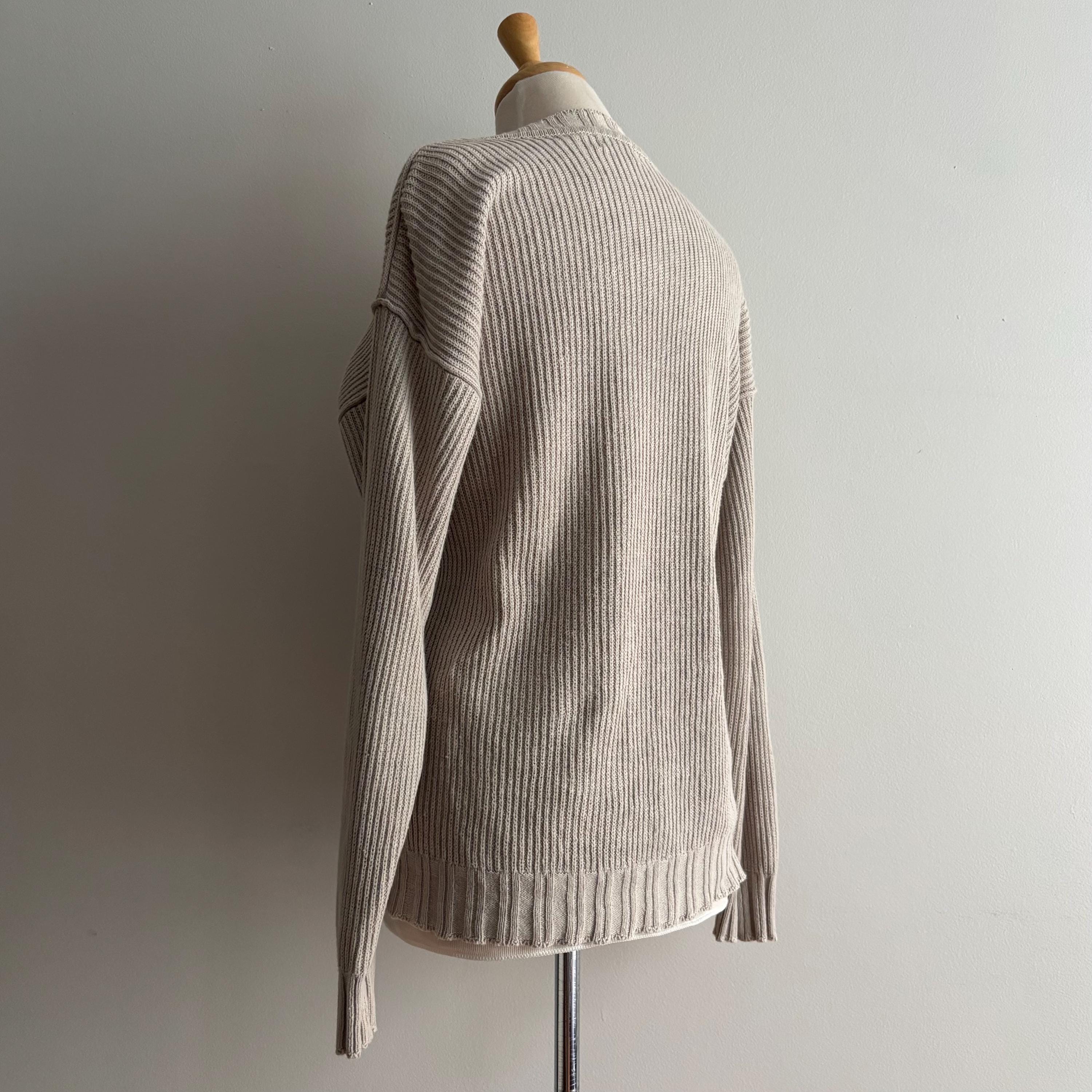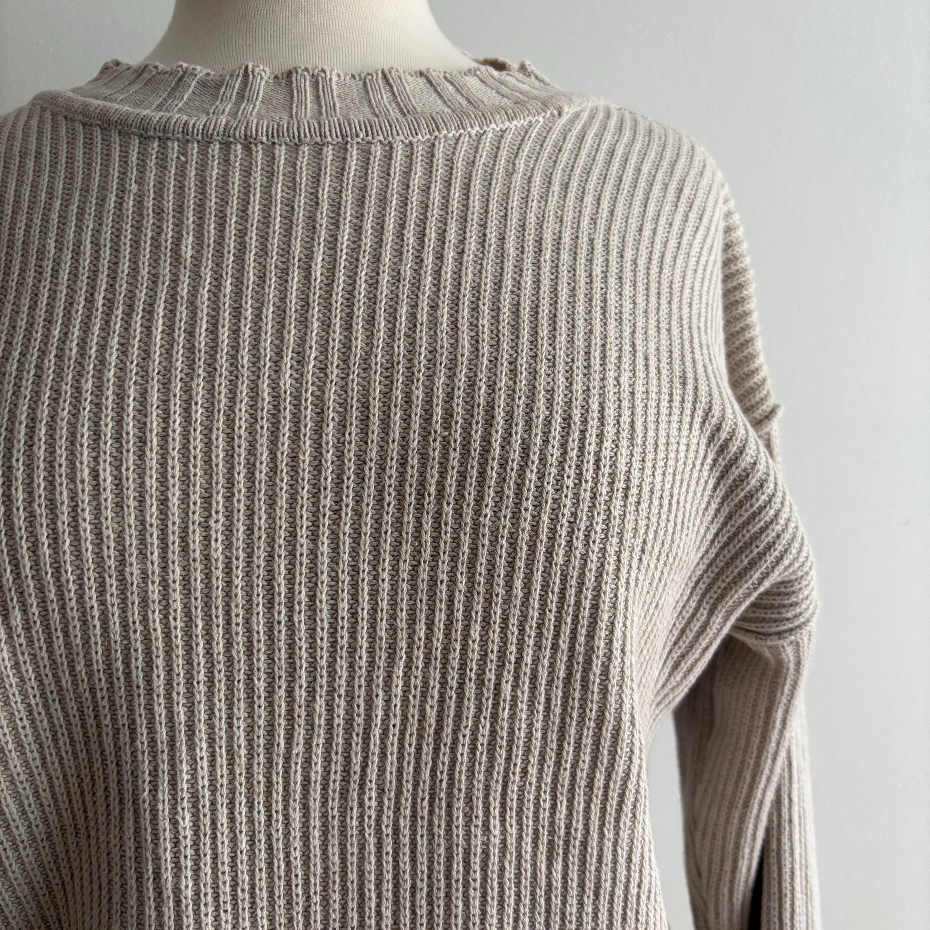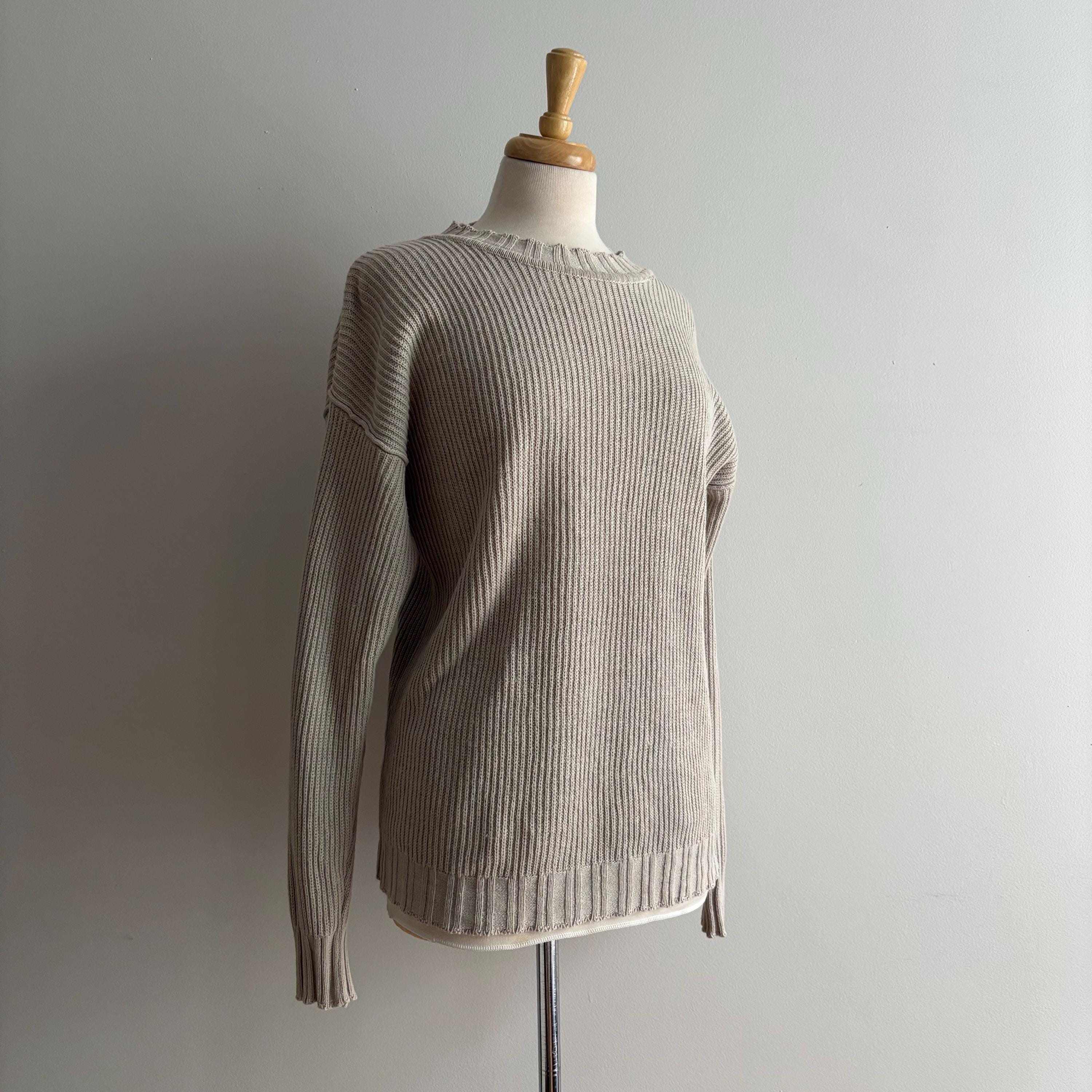 Take your favourite summer fabrics into fall and winter, with this lovely vintage 90s cotton and linen blend sweater from Esprit. Very pale grey, almost the colour of a milky lavender. Rib knit with reverse seams at the shoulders. Breathable and comfy. A neutral, easy to wear piece. 55% linen, 45% cotton. Made in Taiwan. No size tags, so please see the measurements for best fit!