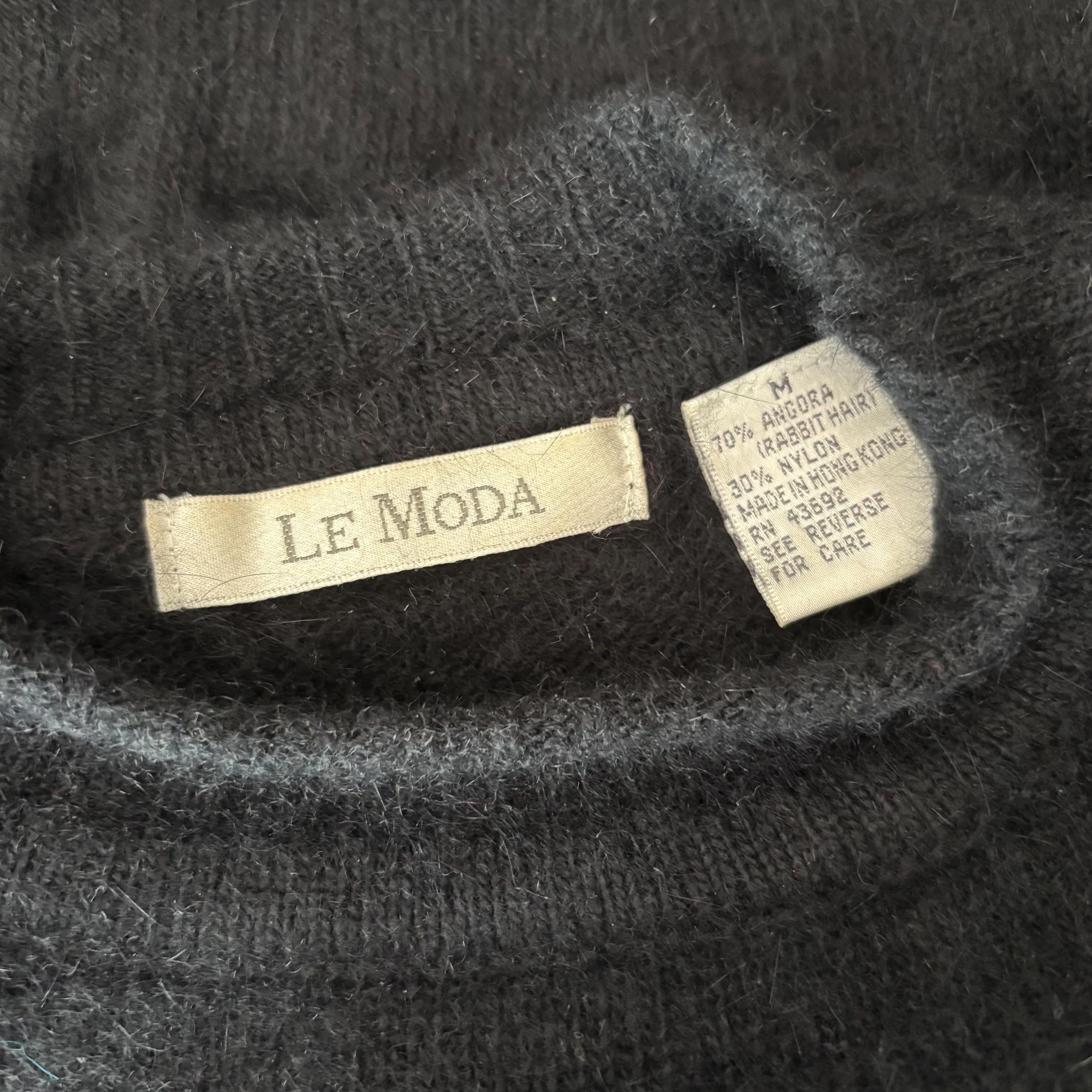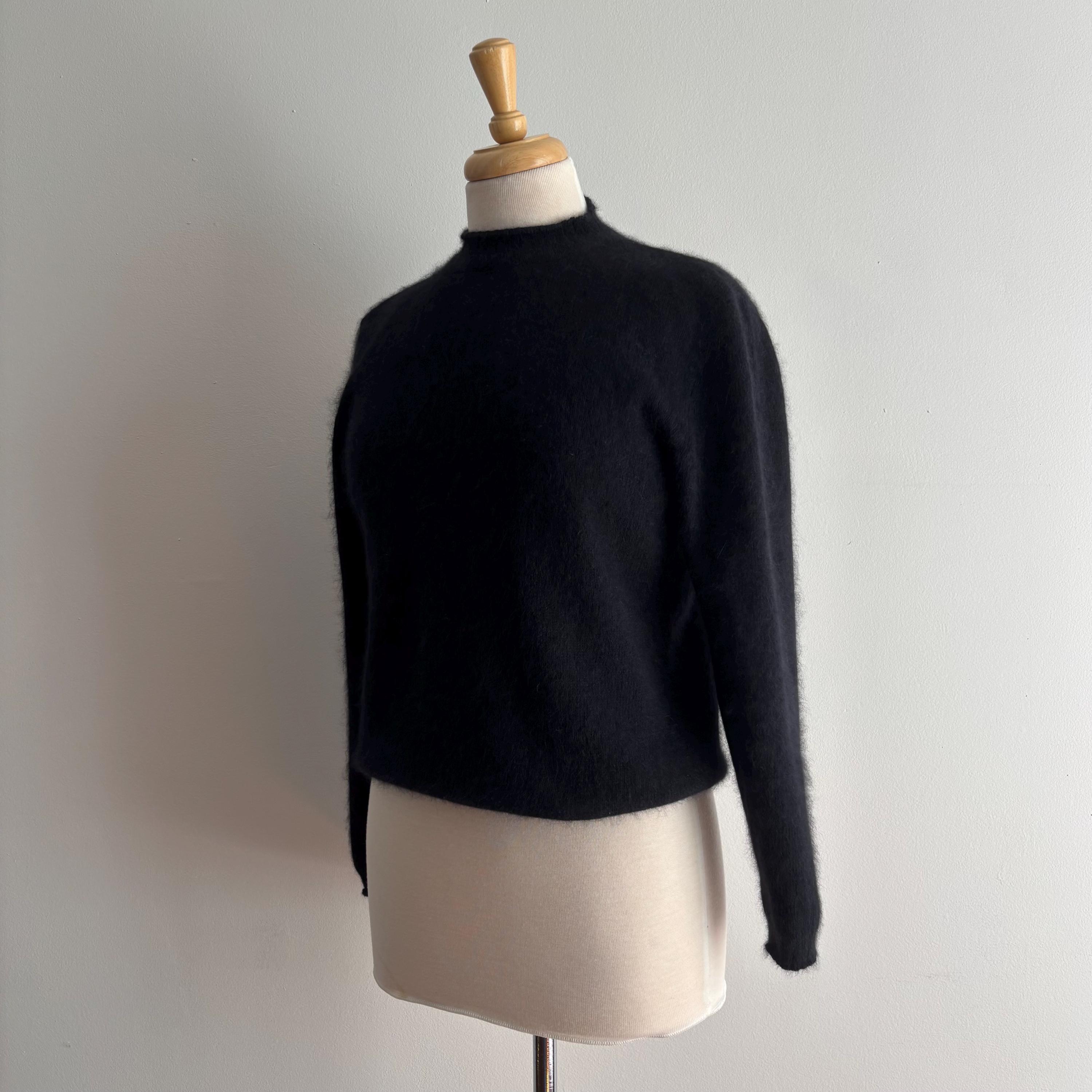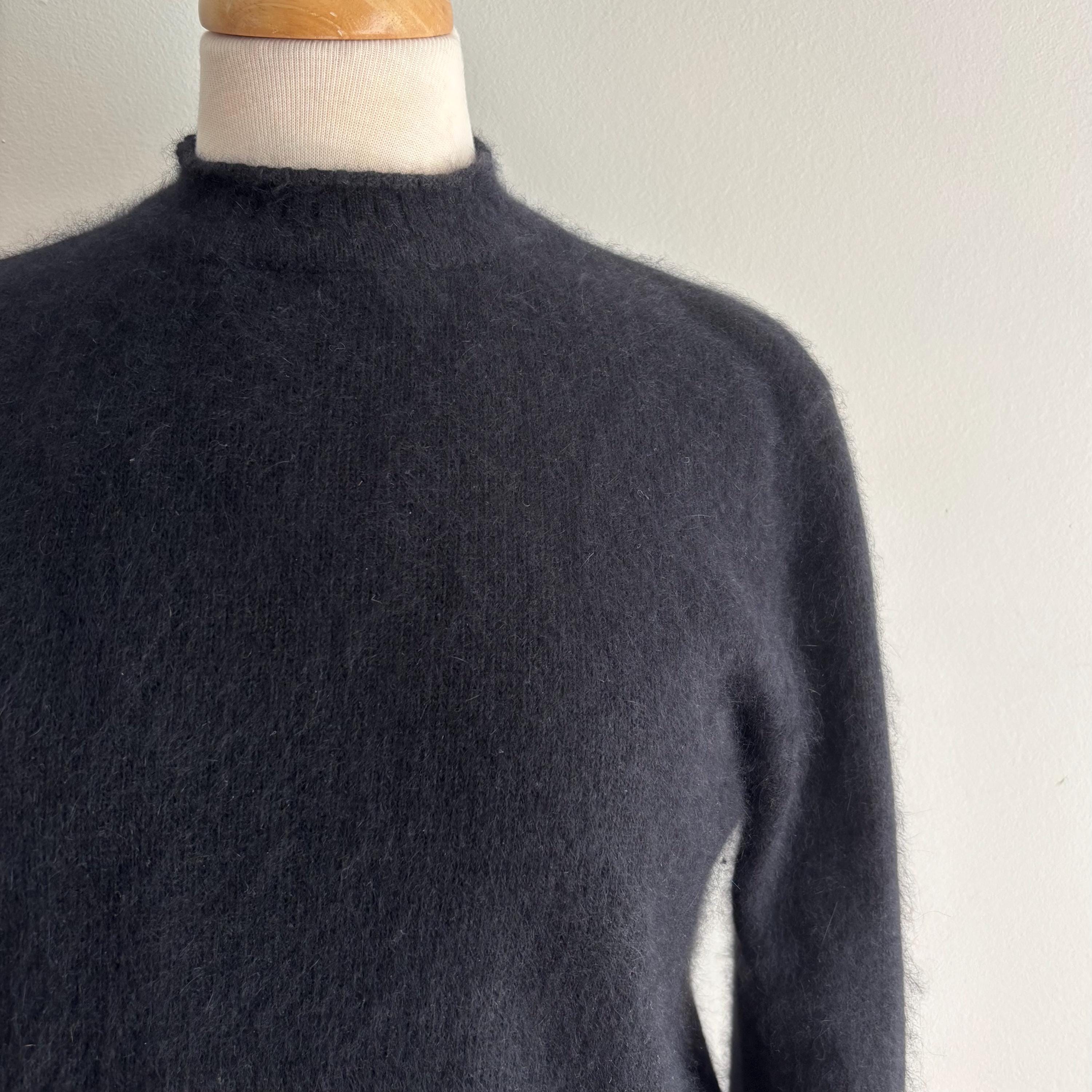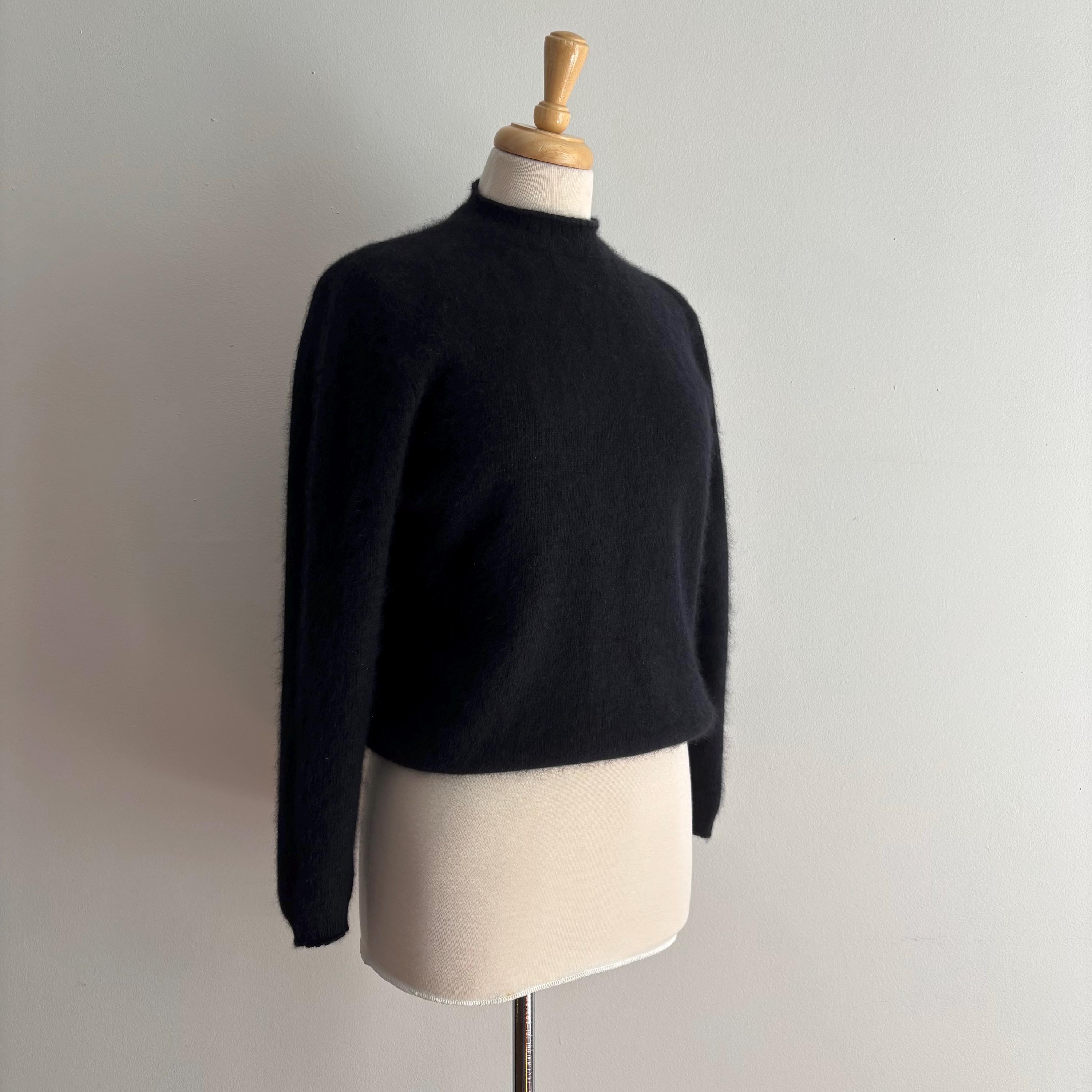 Super soft and fuzzy, this 2000's angora blend long-sleeved sweater will keep you nice and cozy this fall and winter. With a ribbed mock neck, and a loose fit without being oversized, it's the perfect luxurious staple. Made in Hong Kong. 70% angora (rabbit hair), 30% nylon. Size M. Please see the measurements for best fit!