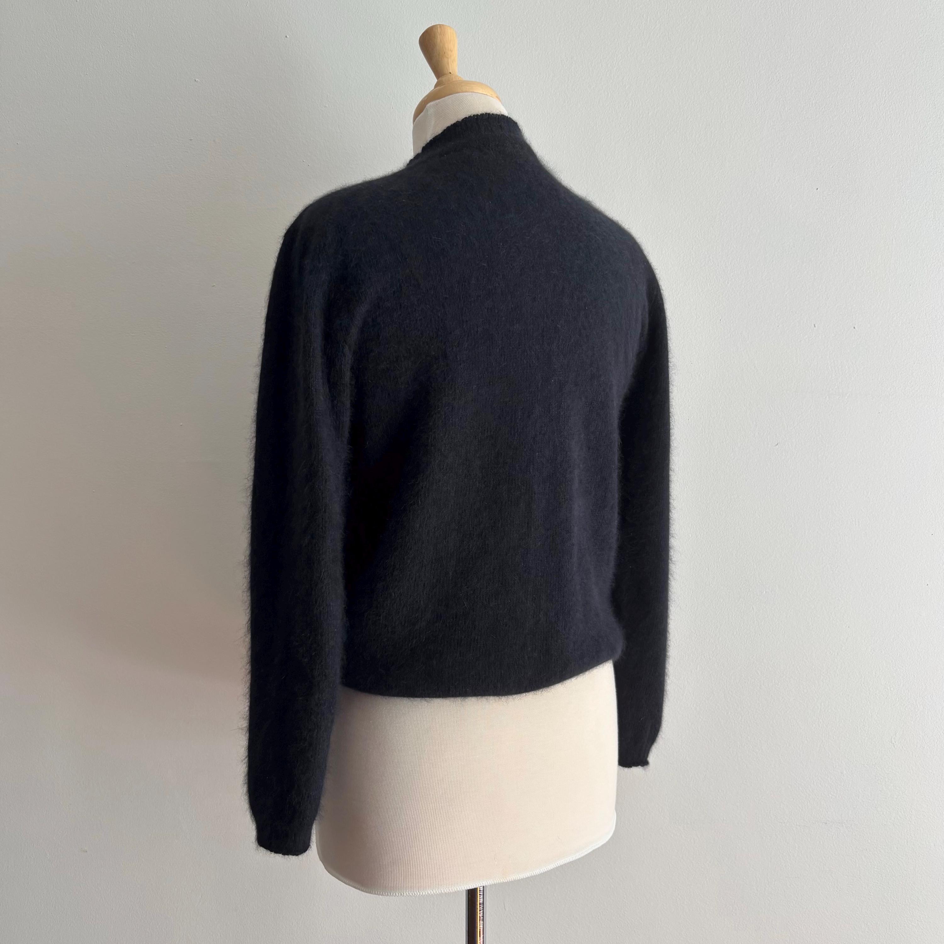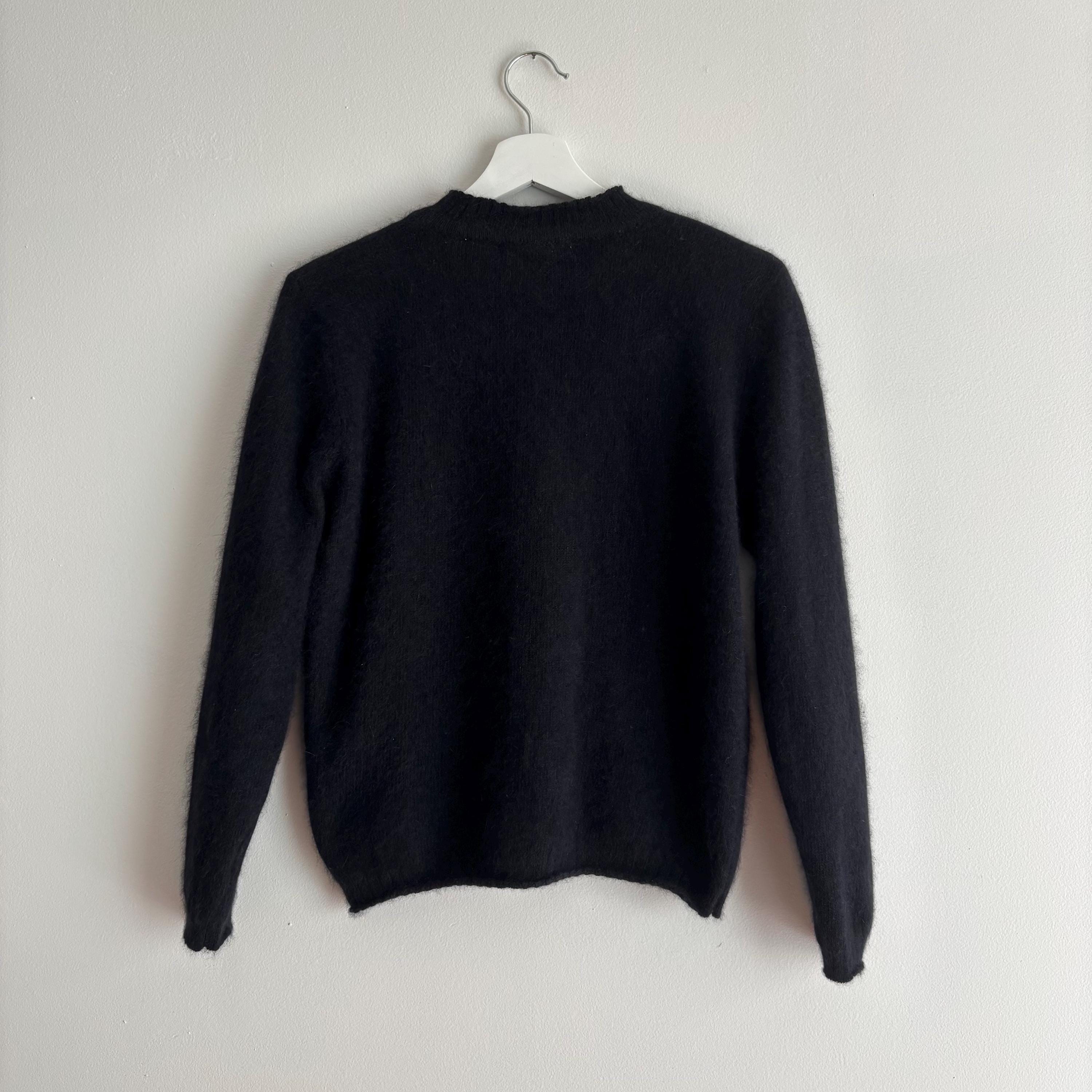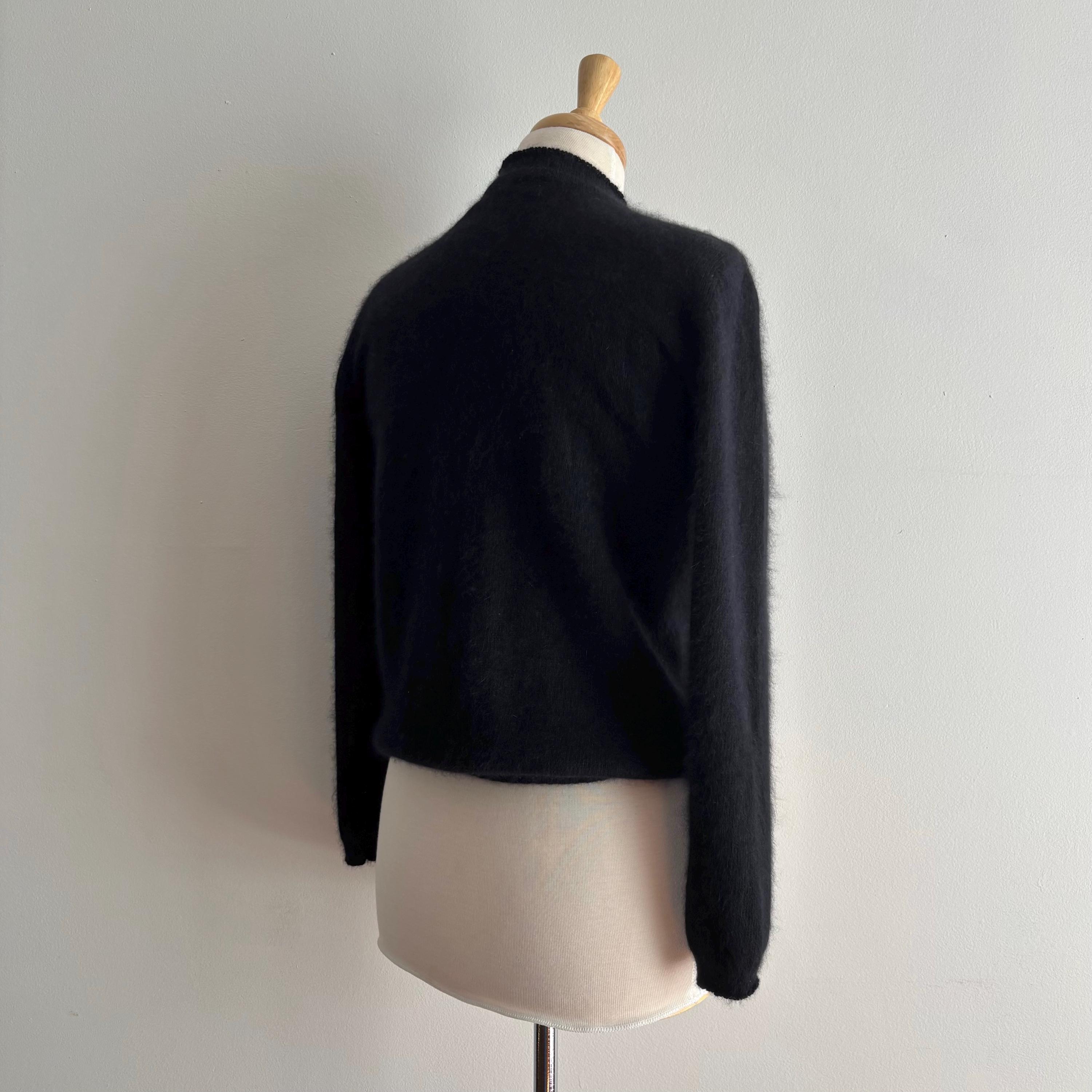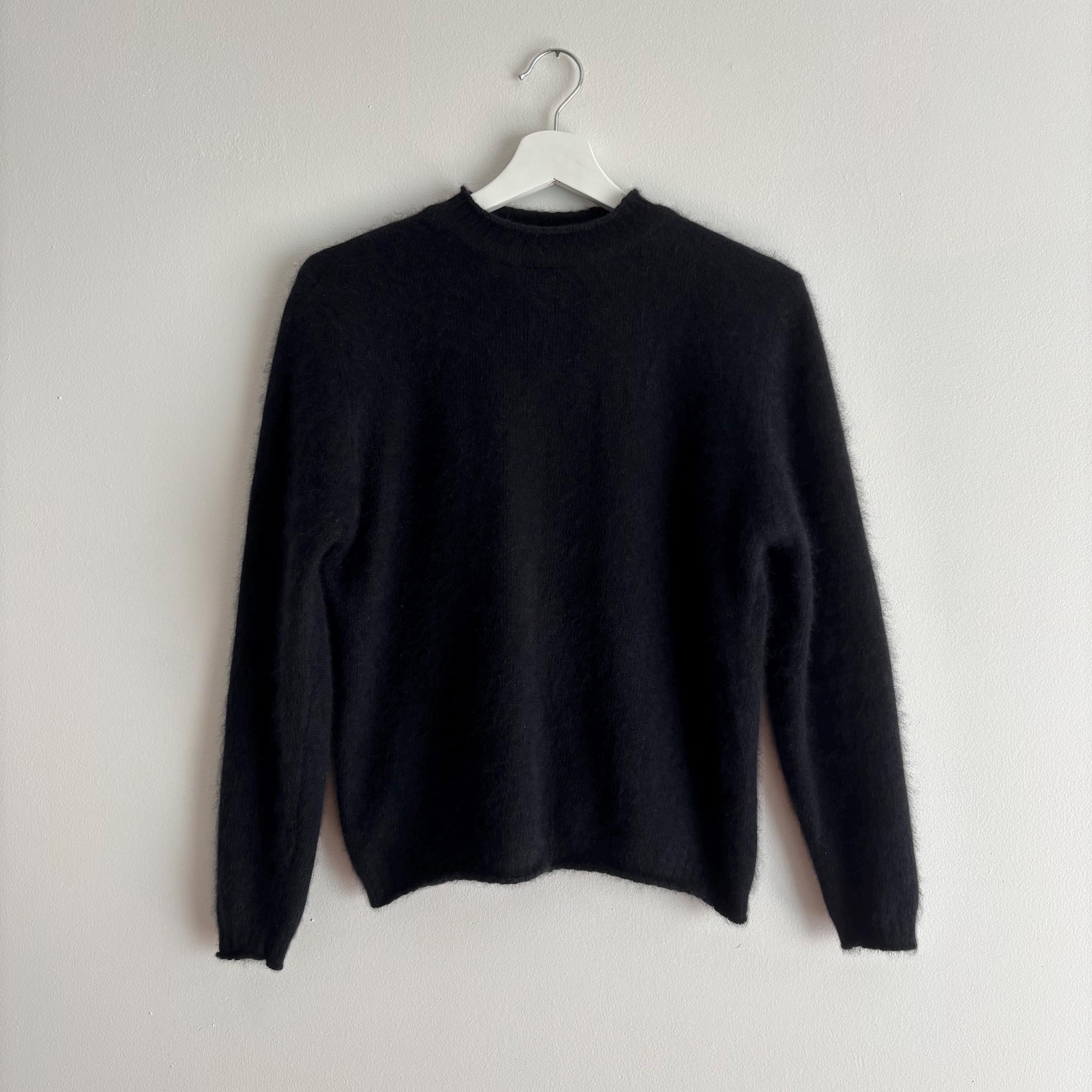 Super soft and fuzzy, this 2000's angora blend long-sleeved sweater will keep you nice and cozy this fall and winter. With a ribbed mock neck, and a loose fit without being oversized, it's the perfect luxurious staple. Made in Hong Kong. 70% angora (rabbit hair), 30% nylon. Size M. Please see the measurements for best fit!