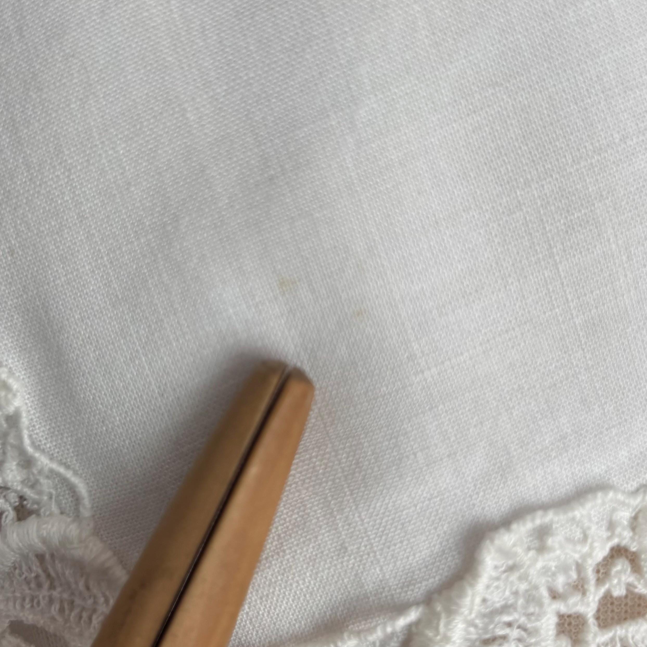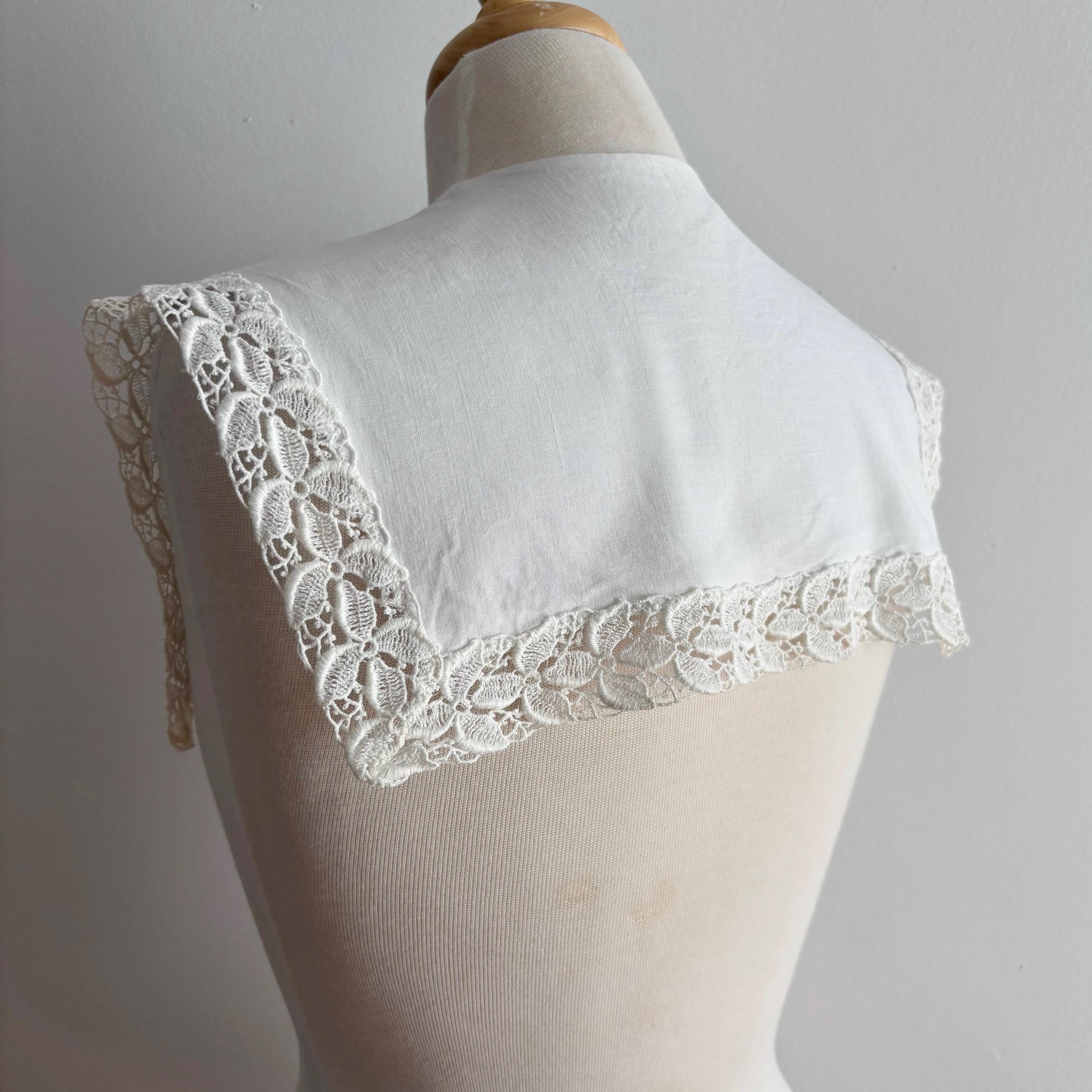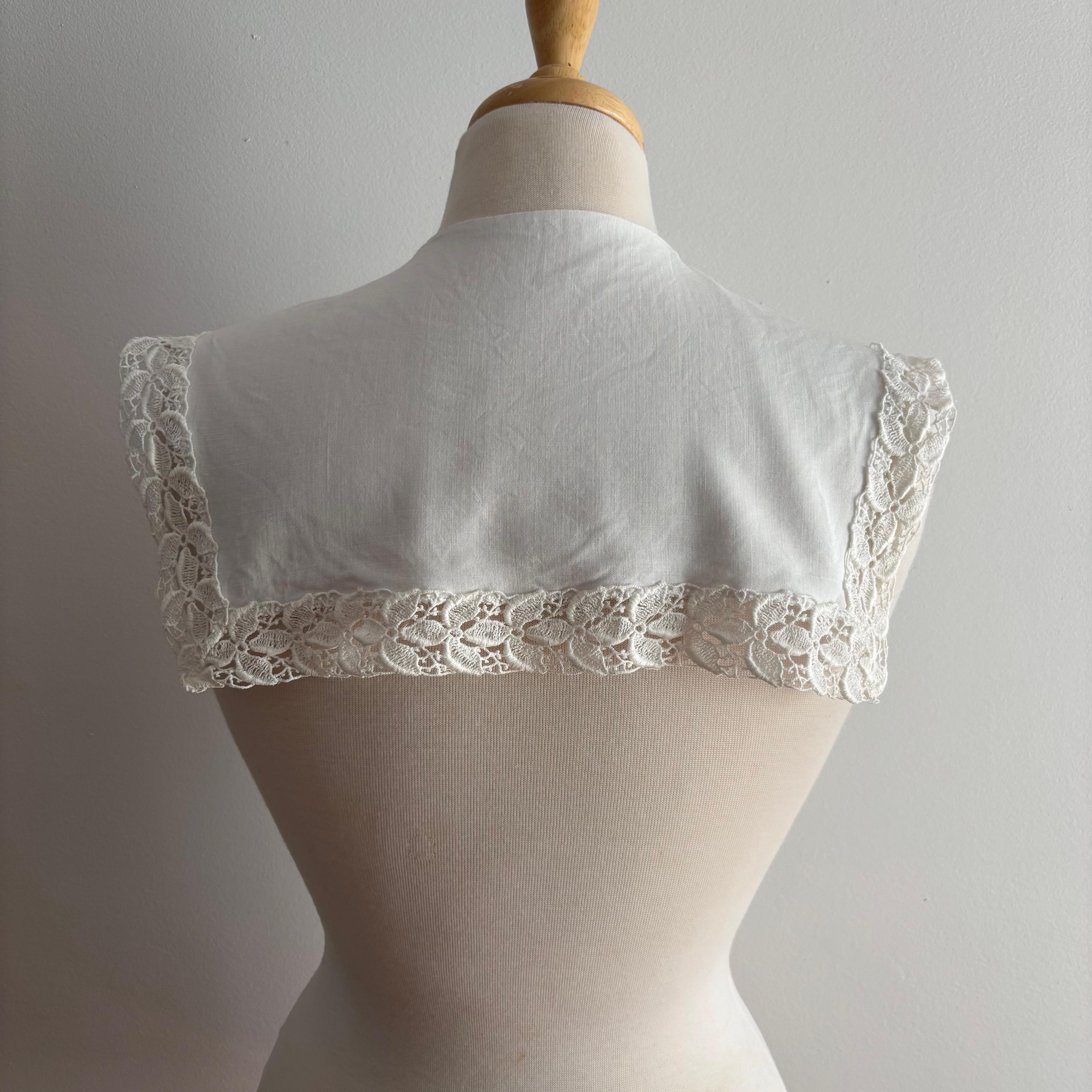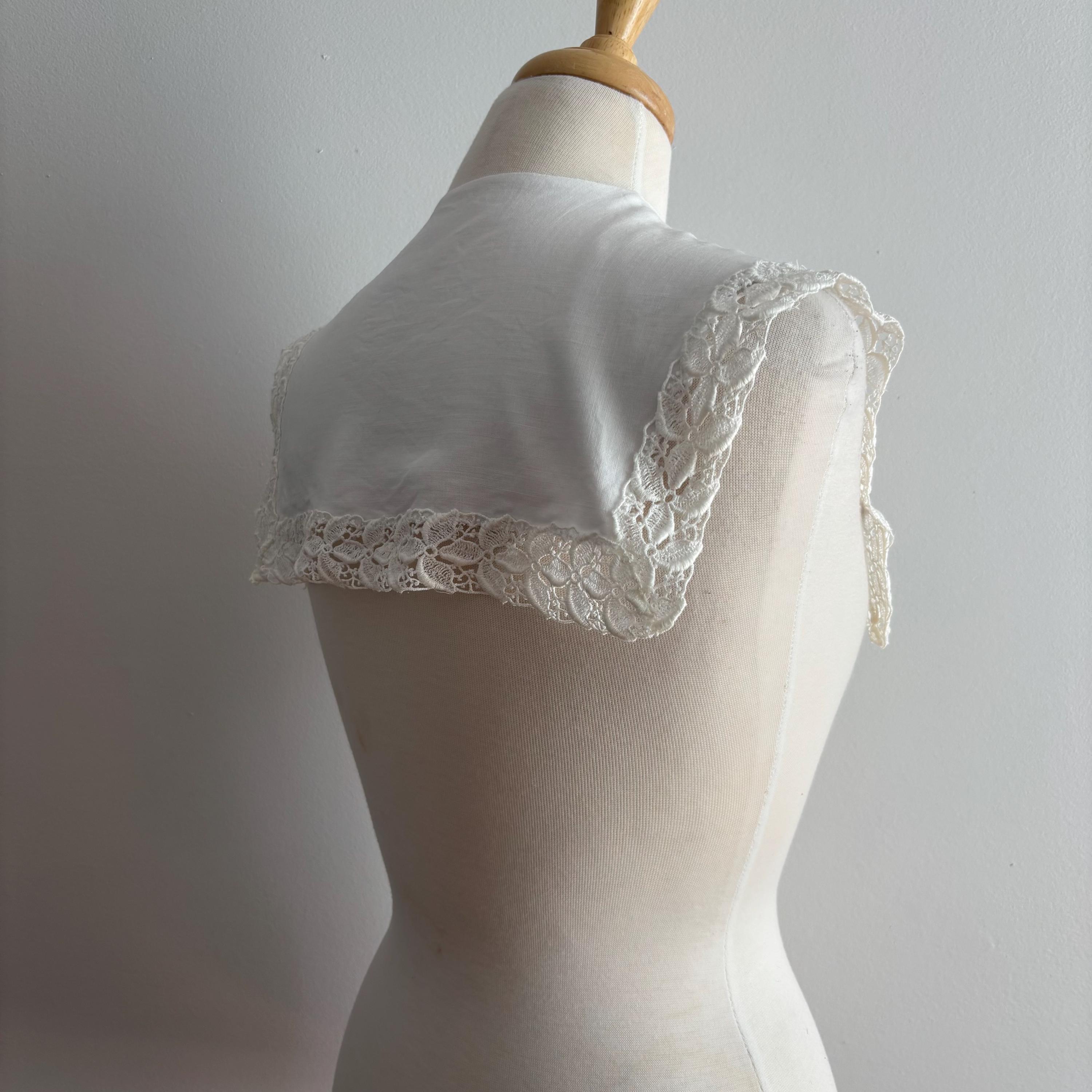 A sweet little collar to add a little something extra. Two layers of fine cotton broadcloth that button at the front, trimmed with a leafy patterned lace. I love popping a collar over a fine knit sweater! Please see the measurements for best fit.