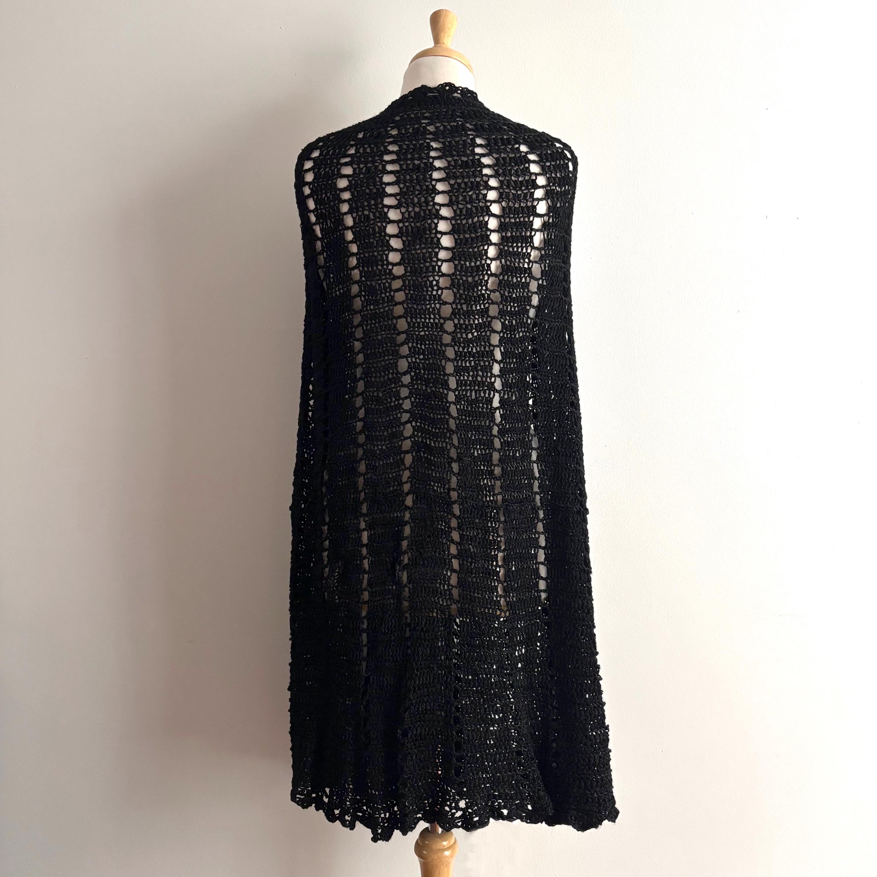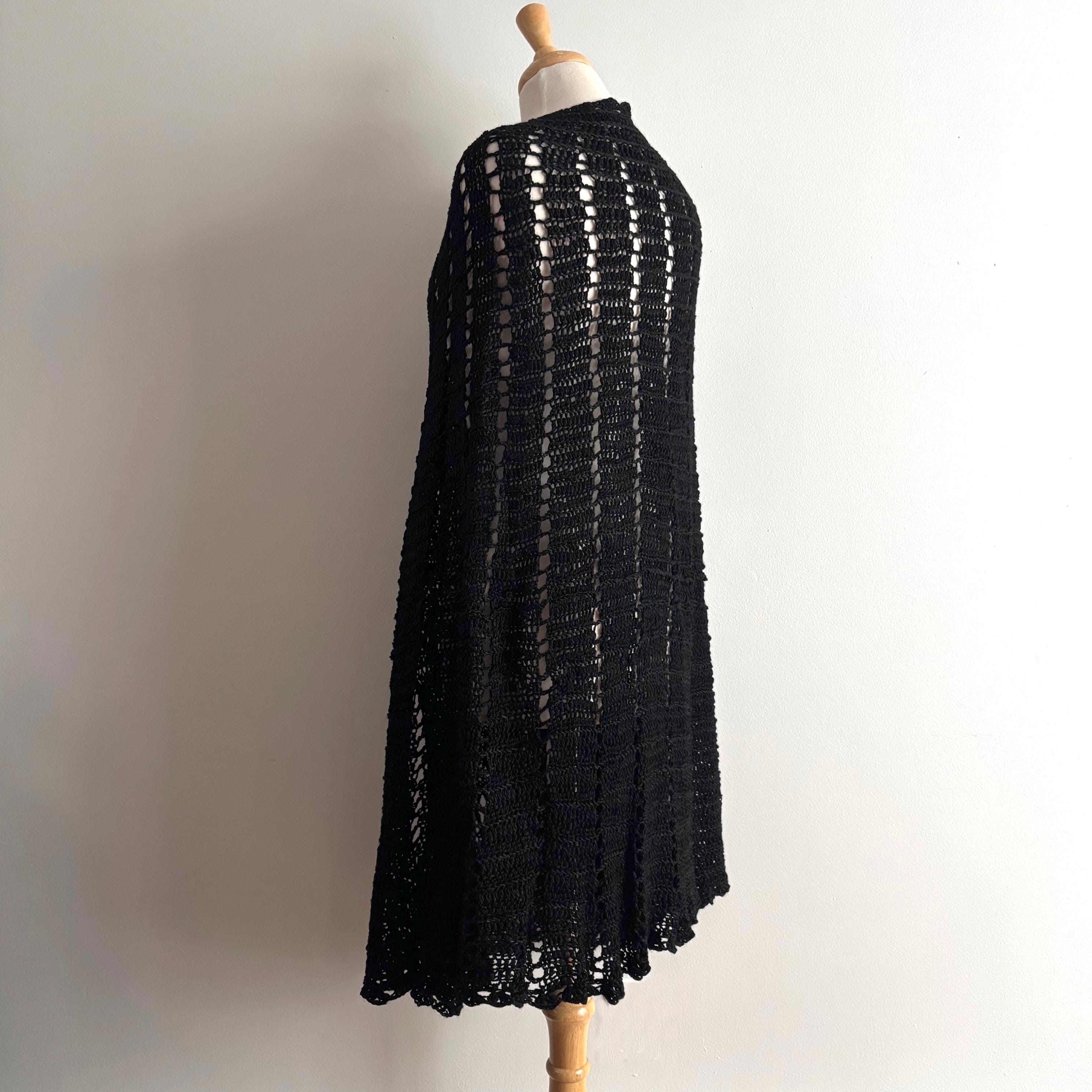 A lovely handmade vintage crocheted cape! The cape has a scalloped collar, an open weave pattern, and three large buttons to close. There is an opening on each side for you to pop your hands through. A special and unique piece. Please see the measurements for best fit!