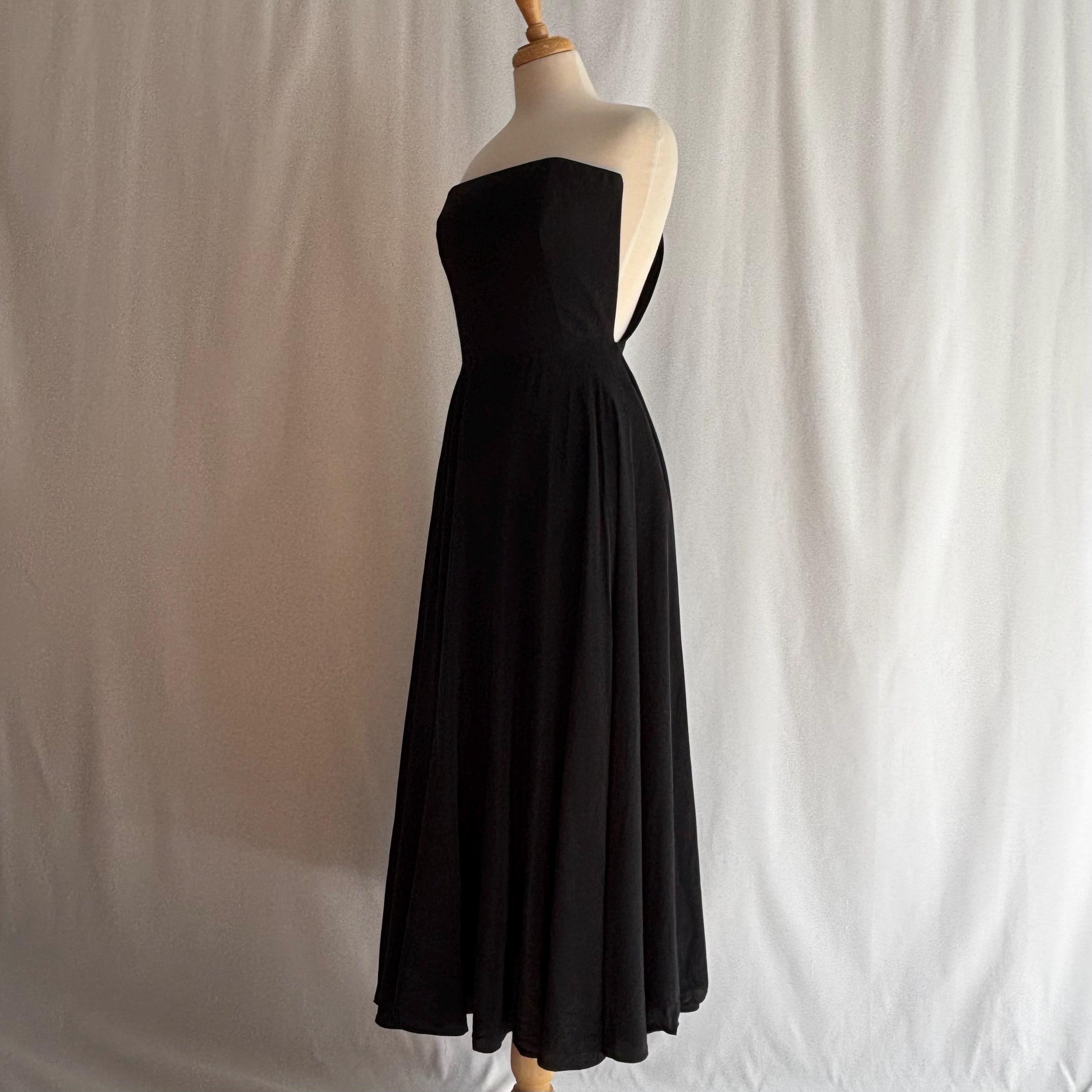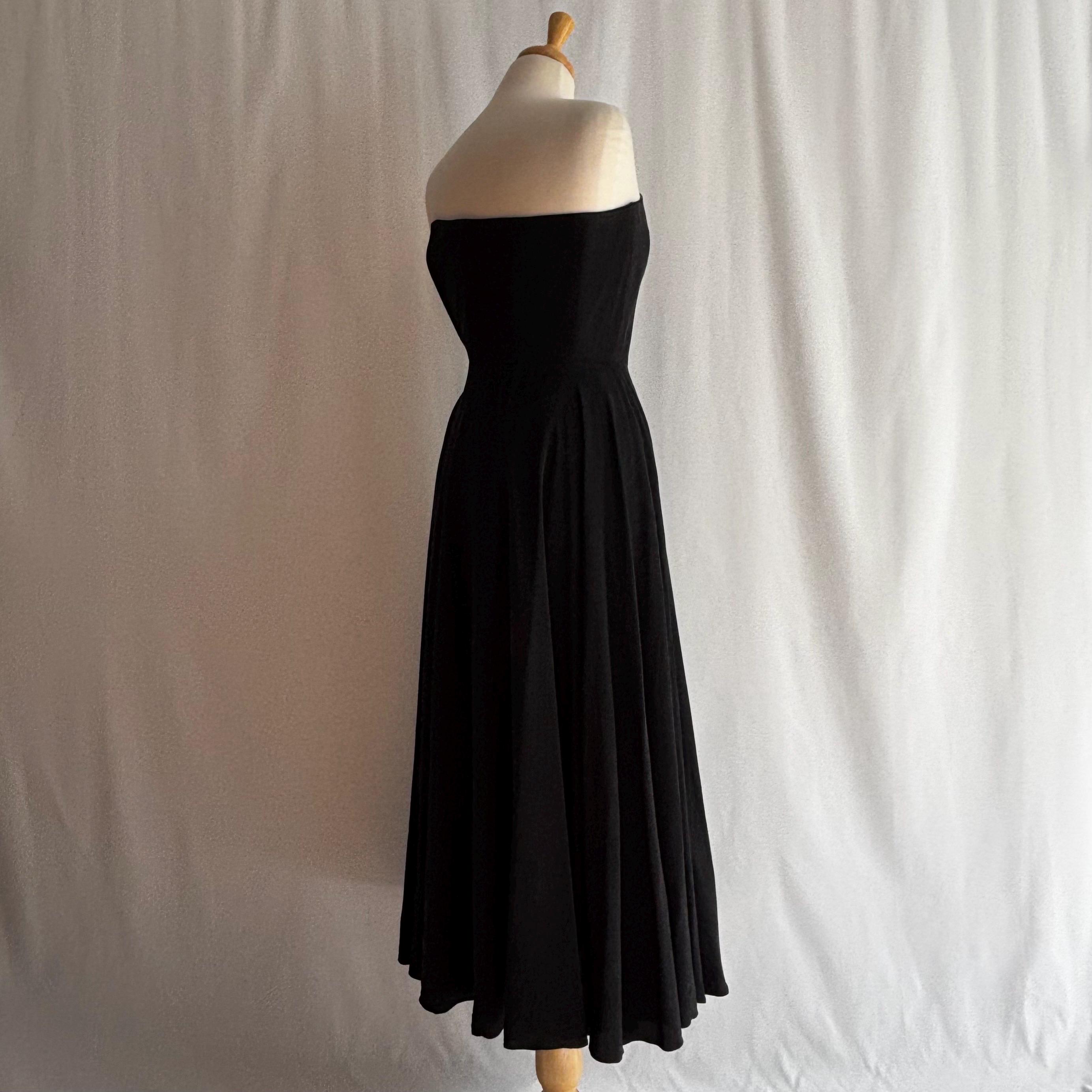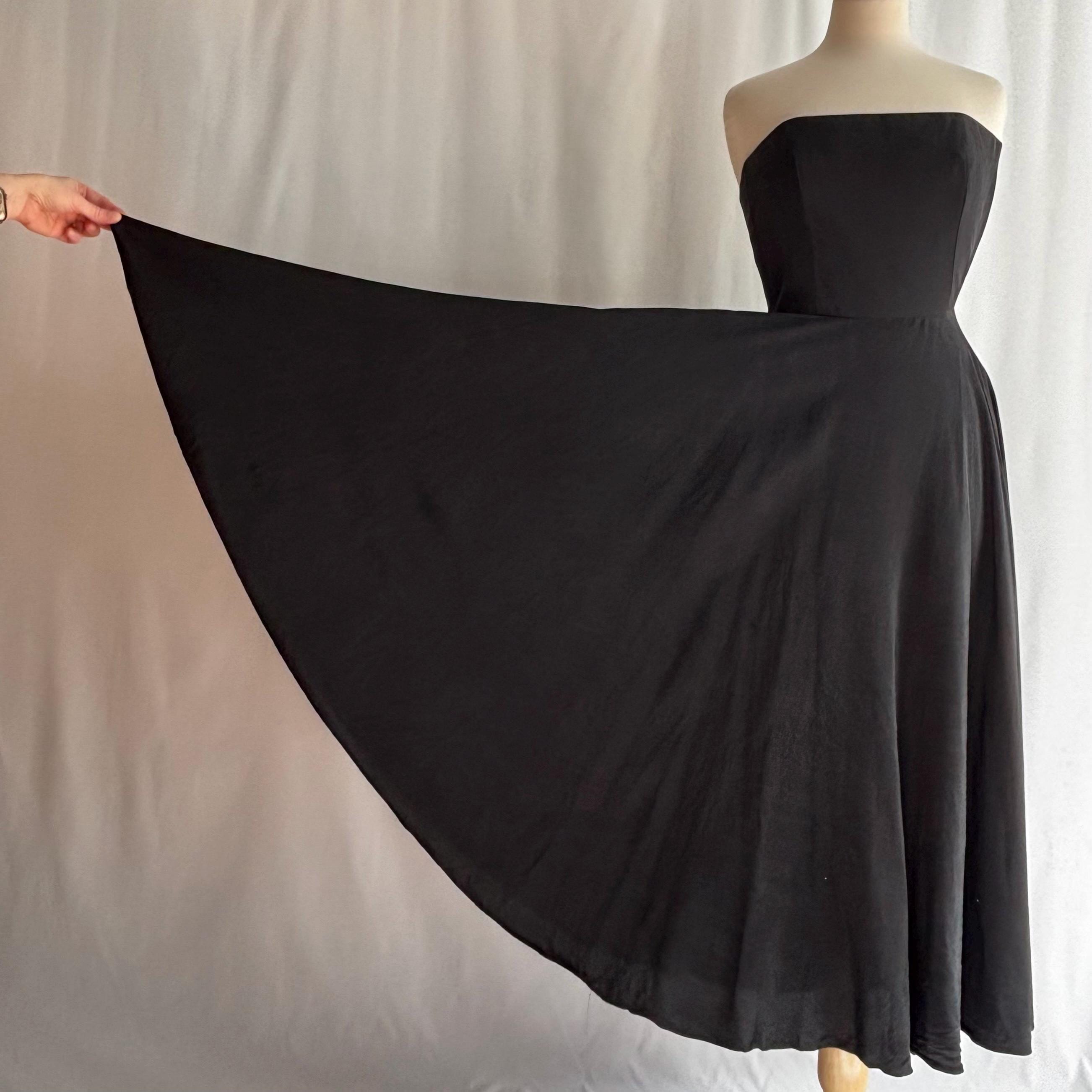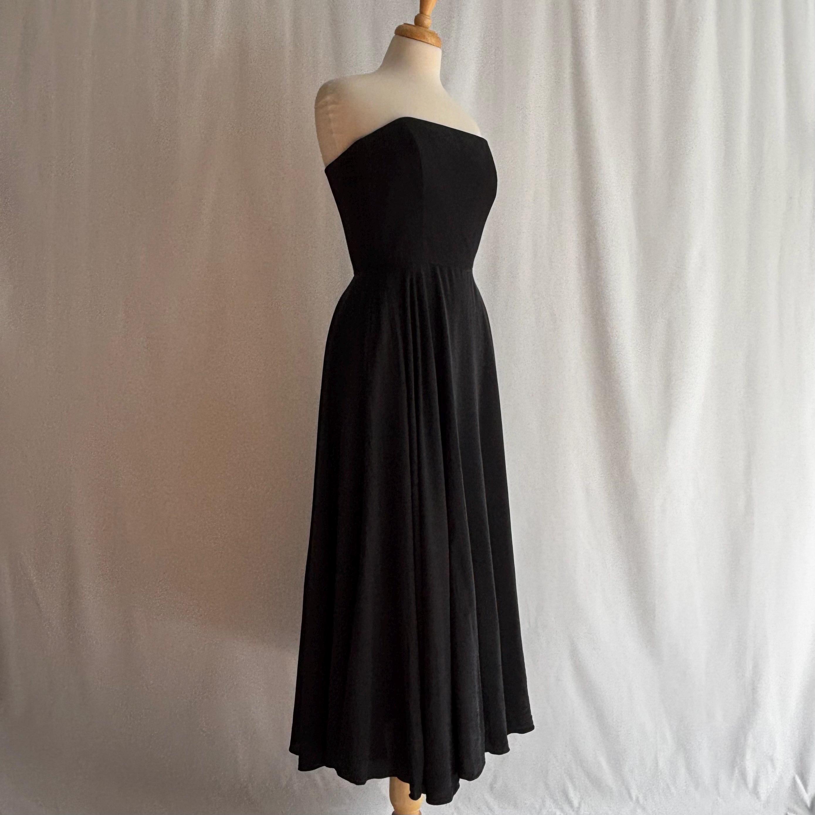 The Little Black Dress of my dreams! Vintage 90s Ann Taylor strapless dress. 100% silk, through and through. The top is boned for support. The skirt is full and voluminous. A hidden zipper at the side closes you in. Yes, there are pockets. Absolutely gorgeous! 100% silk, made in Korea. Size 6, but please see the measurements for best fit. (It was too small for my dress form, please pardon the open zipper!)